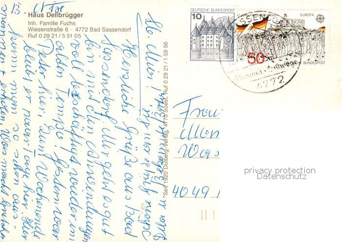 73845221 alte Postkarte Bad Sassendorf Haus Dellbruegger Thermalbad Saline Gastraeume postalisch gelaufen Erhaltung siehe scans [WerneD78] KatCode: 11110005974008