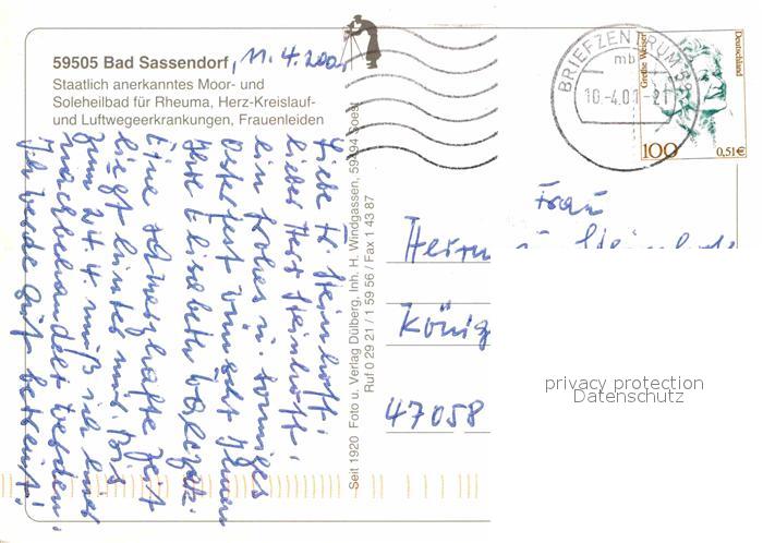 72668069 alte Postkarte Bad Sassendorf Klinik Lindenplatz Park Fachwerkhaeuser Brunnen Skulptur postalisch gelaufen Erhaltung siehe scans [WerneD78] KatCode: 11110005974008
