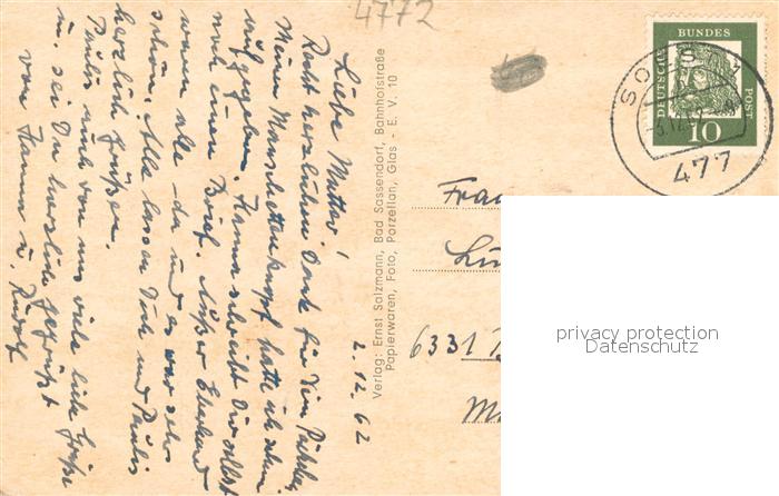 73694061 alte Postkarte Bad Sassendorf Kurgarten postalisch gelaufen Erhaltung siehe scans [WerneD78] KatCode: 11110005974008
