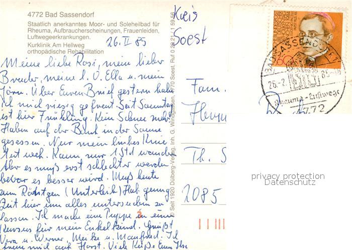 73093606 alte Postkarte Bad Sassendorf Kurklinik Am Hellweg postalisch gelaufen Erhaltung siehe scans [NatalD47] KatCode: 11110005974008