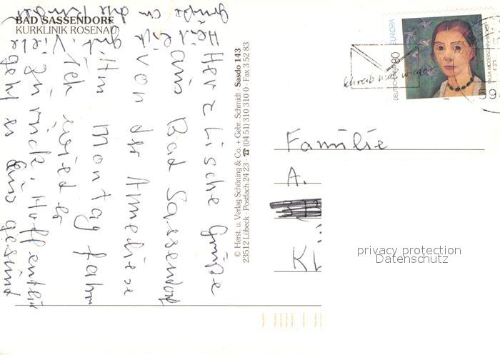 73176224 alte Postkarte Bad Sassendorf Kurklinik Rosenau postalisch gelaufen Erhaltung siehe scans [NatalD47] KatCode: 11110005974008