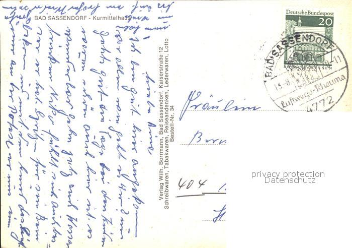 72312514 alte Postkarte Bad Sassendorf Kurmittelhaus postalisch gelaufen Erhaltung siehe scans KatCode: 11110005974008