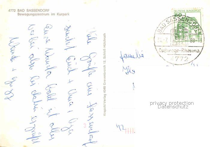 72729861 alte Postkarte Bad Sassendorf Kurpark postalisch gelaufen Erhaltung siehe scans [AndreD76] KatCode: 11110005974008
