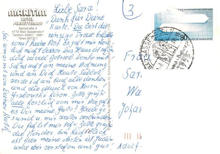 73934259 alte Postkarte Bad Sassendorf Maritim Hotel Schnittenhof postalisch gelaufen Erhaltung siehe scans [WerneD78] KatCode: 11110005974008