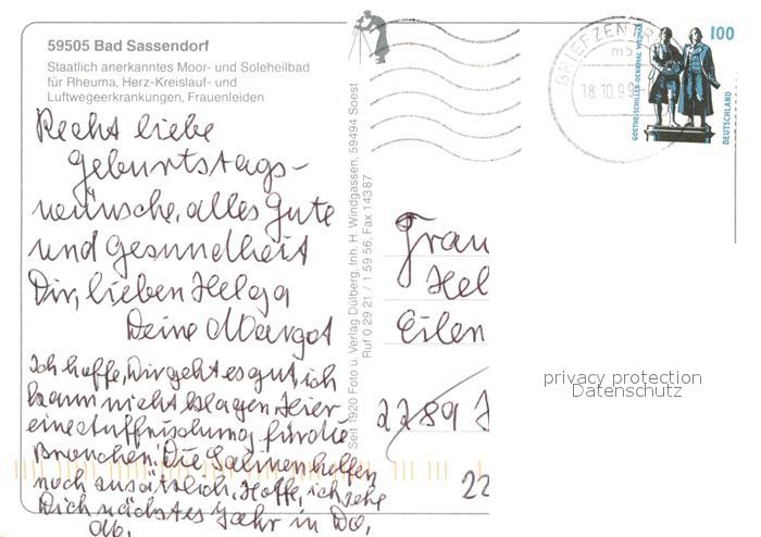 72962807 alte Postkarte Bad Sassendorf Moor und Soleheilbad postalisch gelaufen Erhaltung siehe scans [WerneD78] KatCode: 11110005974008