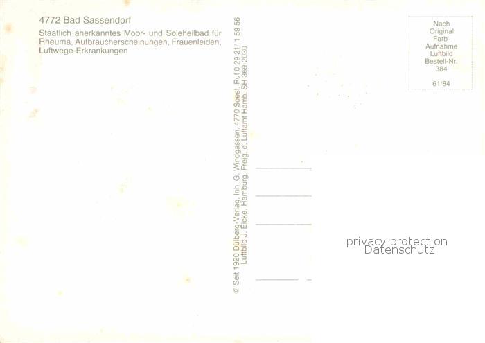 72743778 Bad Sassendorf Moorbad Soleheilbad Fliegeraufnahme postalisch nicht gelaufen Erhaltung siehe scans [FriedD77] KatCode: 11110005974008