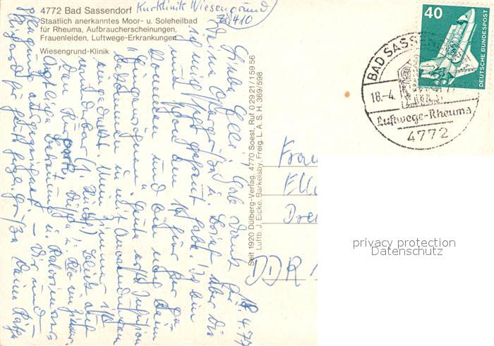 73170524 alte Postkarte Bad Sassendorf Moorbad Soleheilbad Wiesengrund Klinik Fliegeraufnahme postalisch gelaufen Erhaltung siehe scans [FriedD77] KatCode: 11110005974008
