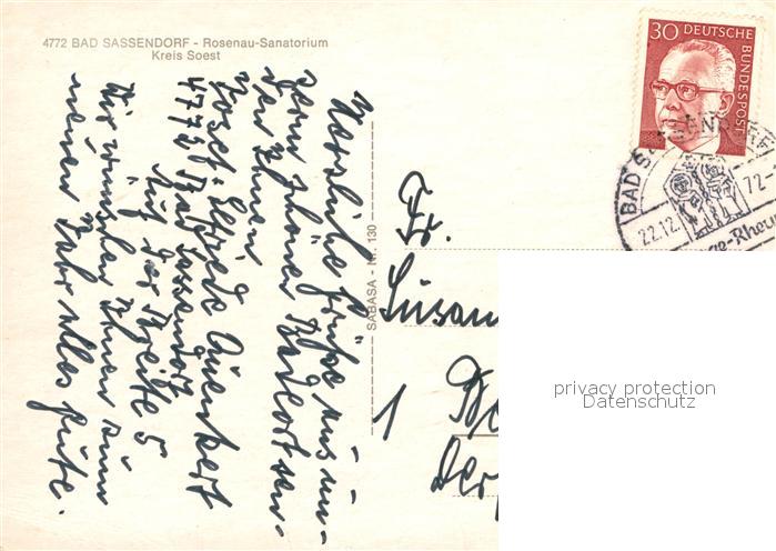 72989667 alte Postkarte Bad Sassendorf Rosenau Sanatorium postalisch gelaufen Erhaltung siehe scans [WerneD78] KatCode: 11110005974008