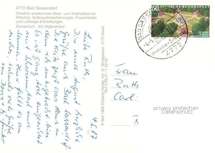 73143686 alte Postkarte Bad Sassendorf Sanatorium Am Malerwinkel postalisch gelaufen Erhaltung siehe scans [FriedD77] KatCode: 11110005974008