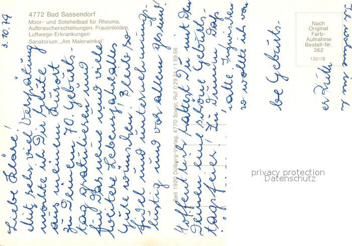 73124113 Bad Sassendorf Sanatorium Am Malerwinkel postalisch nicht gelaufen Erhaltung siehe scans [LiesaD40] KatCode: 11110005974008