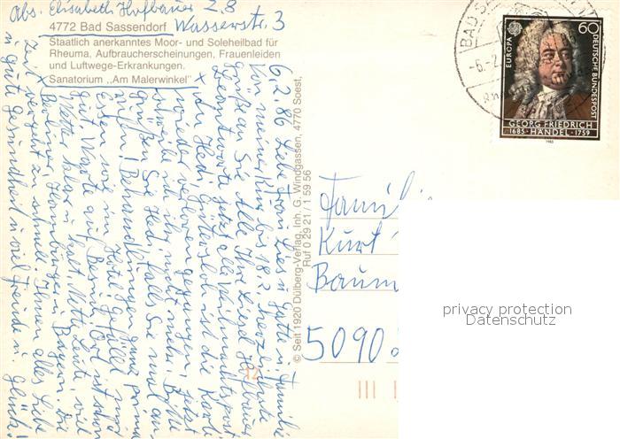 73062445 alte Postkarte Bad Sassendorf Sanatorium Am Malerwinkel postalisch gelaufen Erhaltung siehe scans [KathaD81] KatCode: 11110005974008