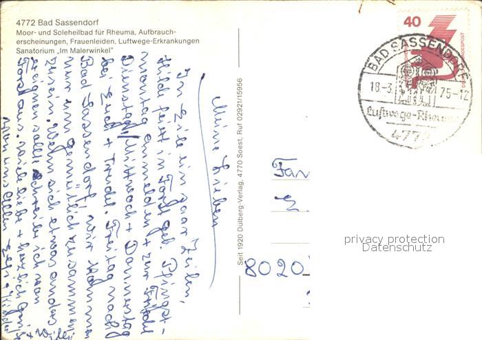 72370145 alte Postkarte Bad Sassendorf Sanatorium Malerwinkel postalisch gelaufen Erhaltung siehe scans KatCode: 11110005974008