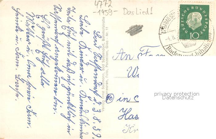 73703082 alte Postkarte Bad Sassendorf Sassendorfer Lied postalisch gelaufen Erhaltung siehe scans [LiesaD40] KatCode: 11110005974008