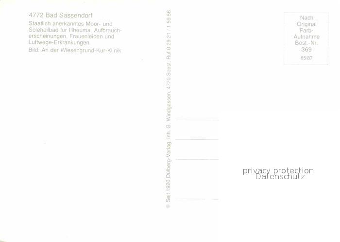 72692910 Bad Sassendorf Wiesengrund Kurklinik postalisch nicht gelaufen Erhaltung siehe scans [FriedD77] KatCode: 11110005974008