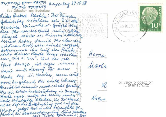 72633215 alte Postkarte Bad Schachen Lindau Fliegeraufnahme postalisch gelaufen Erhaltung siehe scans [FriedD77] KatCode: 11110009776116