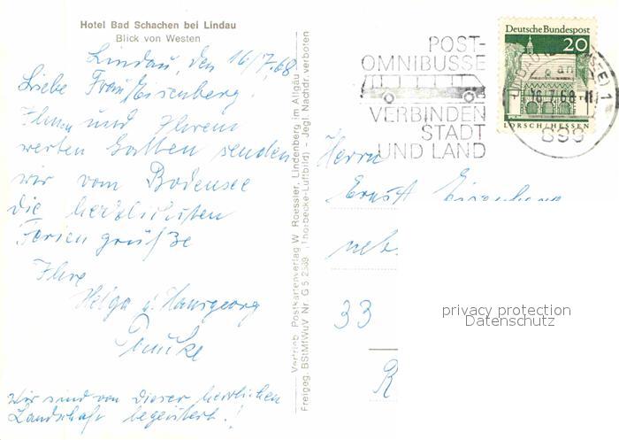 72798112 alte Postkarte Bad Schachen Lindau Fliegeraufnahme postalisch gelaufen Erhaltung siehe scans [AndreD76] KatCode: 11110009776116