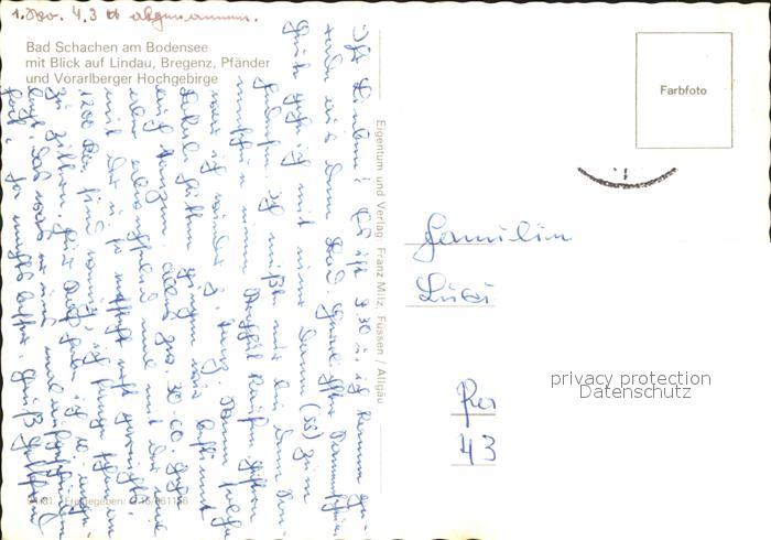 71831745 alte Postkarte Bad Schachen Lindau Fliegeraufnahme Blick Lindau Bregenz Pfaender Voralberger Hochgebirge postalisch gelaufen Erhaltung siehe scans KatCode: 11110009776116