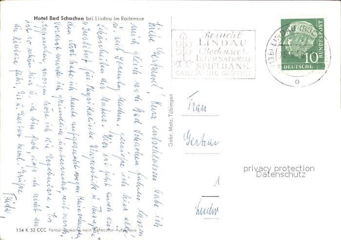 72512556 alte Postkarte Bad Schachen Lindau Hotel Bad Schachen postalisch gelaufen Erhaltung siehe scans KatCode: 11110009776116