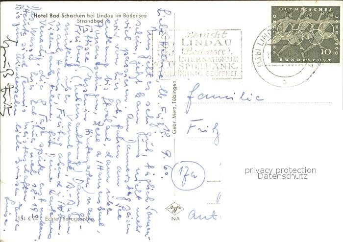 72203681 alte Postkarte Bad Schachen Lindau Hotel Bad Schachen am Bodensee postalisch gelaufen Erhaltung siehe scans KatCode: 11110009776116
