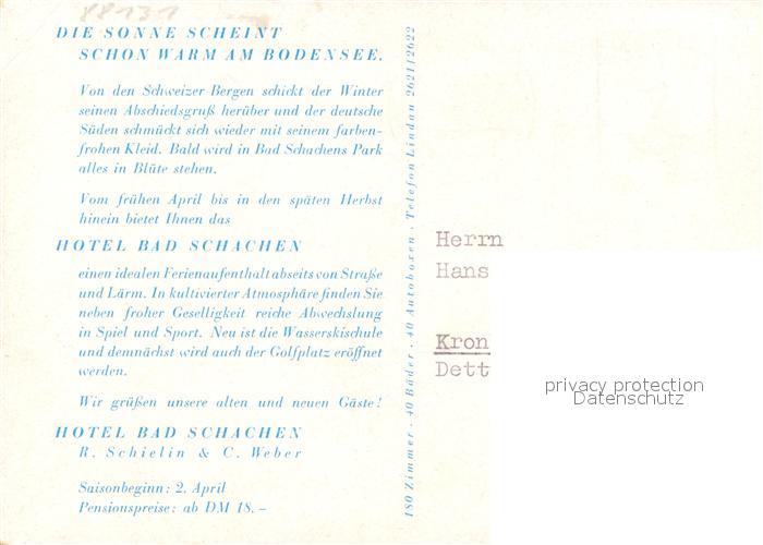 73645598 Bad Schachen Lindau Hotel Bad Schachen postalisch nicht gelaufen Erhaltung siehe scans [WerneD78] KatCode: 11110009776116