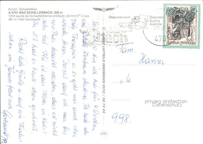 71914389 alte Postkarte Bad Schallerbach Fliegeraufnahme postalisch gelaufen Erhaltung siehe scans KatCode: 11390311040802
