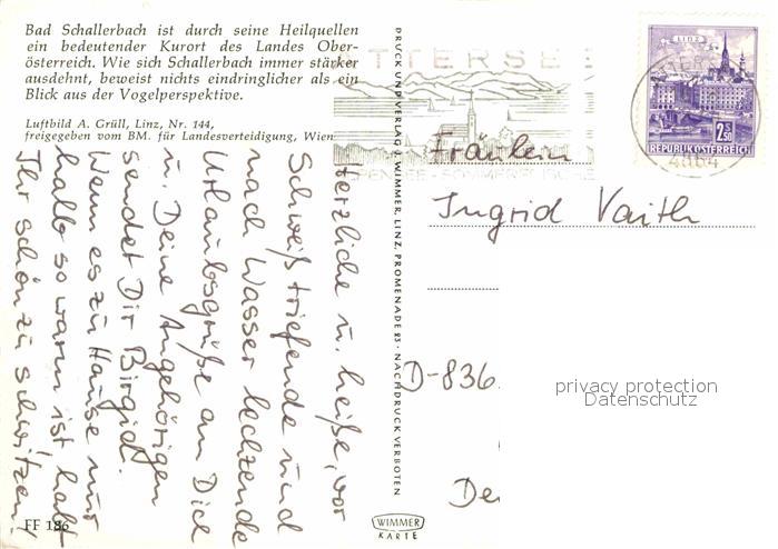 72673353 alte Postkarte Bad Schallerbach Heilquellen Kurort Fliegeraufnahme postalisch gelaufen Erhaltung siehe scans [FriedD77] KatCode: 11390311040802