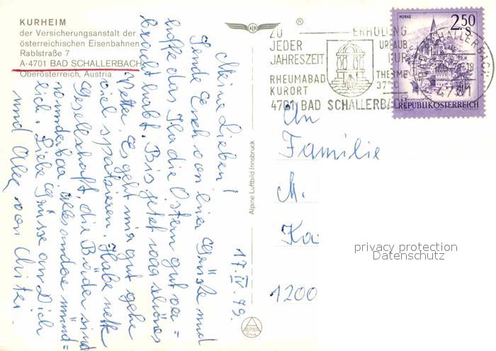 72674014 alte Postkarte Bad Schallerbach Kurheim der Eisenbahner Gastraeume Fliegeraufnahme Zimmer postalisch gelaufen Erhaltung siehe scans [WerneD78] KatCode: 11390311040802