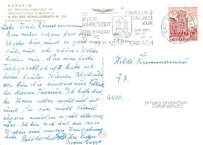 73231273 alte Postkarte Bad Schallerbach Kurheim der Eisenbahner postalisch gelaufen Erhaltung siehe scans [LiesaD40] KatCode: 11390311040802