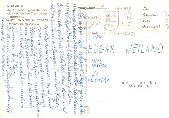 73231261 alte Postkarte Bad Schallerbach Kurheim Fliegeraufnahme postalisch gelaufen Erhaltung siehe scans [LiesaD40] KatCode: 11390311040802