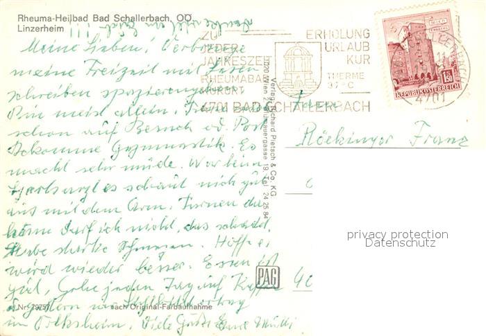73291201 alte Postkarte Bad Schallerbach Rheuma Heilbad Linzerhein postalisch gelaufen Erhaltung siehe scans [LiesaD40] KatCode: 11390311040802