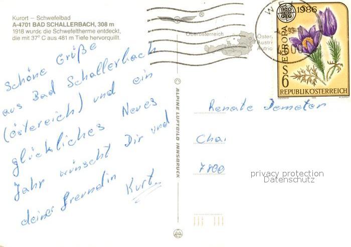 73048360 alte Postkarte Bad Schallerbach Schwefelbad Saline Fliegeraufnahme postalisch gelaufen Erhaltung siehe scans [KathaD81] KatCode: 11390311040802