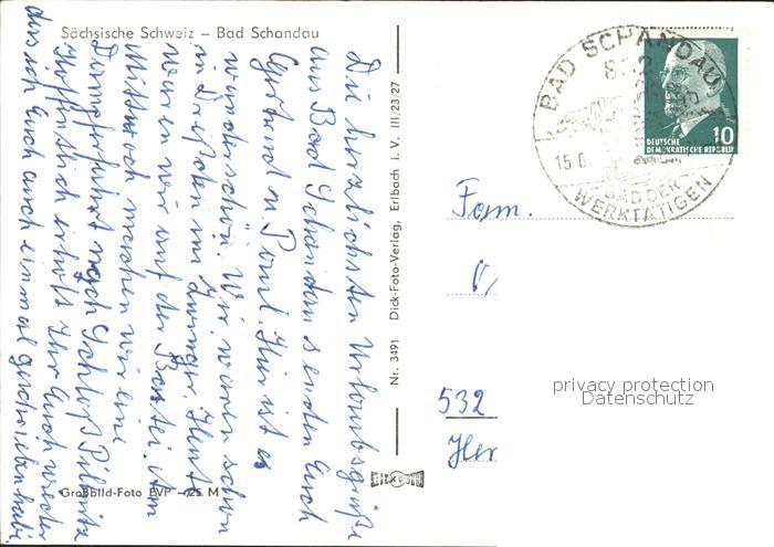 72172075 alte Postkarte Bad Schandau postalisch gelaufen Erhaltung siehe scans KatCode: 11110014287020