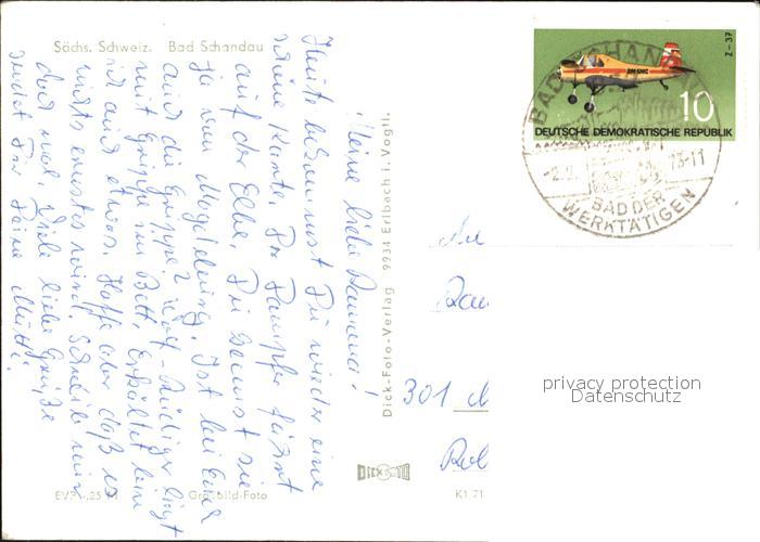 72427774 alte Postkarte Bad Schandau postalisch gelaufen Erhaltung siehe scans KatCode: 11110014287020
