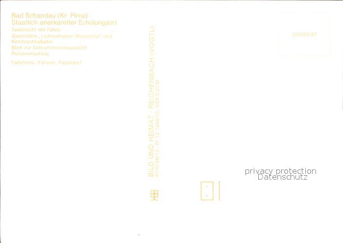 72406715 Bad Schandau Elbe Faehre Gaststaette Lichtenhainer Wasserfall Kirnitzschtalbahn Schrammstein Personenaufzug Elbsandsteingebirge postalisch nicht gelaufen Erhaltung siehe scans KatCode: 11110014287020