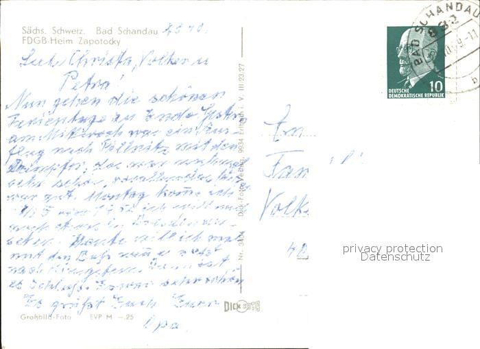 72476556 alte Postkarte Bad Schandau FDGB-Heim Zapotocky postalisch gelaufen Erhaltung siehe scans KatCode: 11110014287020