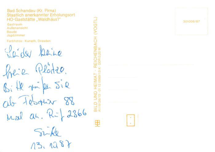 73893940 Bad Schandau HO Gaststaette Waldhaeusl Gastraum Baude Jagdzimmer postalisch nicht gelaufen Erhaltung siehe scans [FriedD77] KatCode: 11110014287020