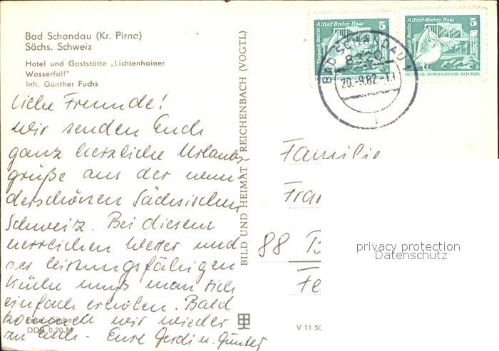72169003 alte Postkarte Bad Schandau Hotel und Gaststaette Lichtenhainer Wasserfall postalisch gelaufen Erhaltung siehe scans KatCode: 11110014287020