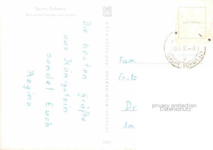 72630550 alte Postkarte Bad Schandau mit Lilienstein postalisch gelaufen Erhaltung siehe scans [LiesaD40] KatCode: 11110014287020
