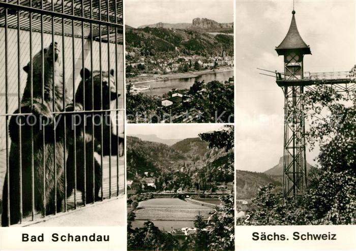 72963935 Bad Schandau Panorama Blick nach Krippen Fahrstuhl Personenaufzug Baeren postalisch nicht gelaufen Erhaltung siehe scans [FriedD77] KatCode: 11110014287020