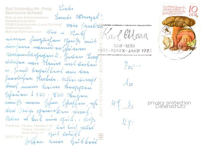 73012015 alte Postkarte Bad Schandau Schrammsteine Dampferanlegestelle FDGB Erholungsheim Louis Fuernberg Postelwitz Rathmannsdorf postalisch gelaufen Erhaltung siehe scans [WerneD78] KatCode: 11110014287020