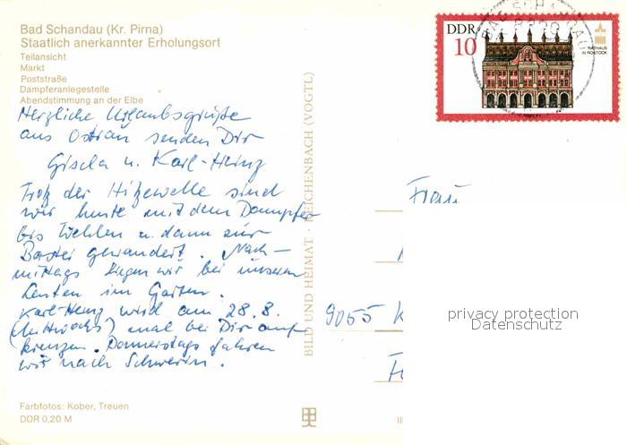 72617439 alte Postkarte Bad Schandau Teilansicht Poststrasse Dampferanlegestelle Elbe Abendstimmung postalisch gelaufen Erhaltung siehe scans [WerneD78] KatCode: 11110014287020