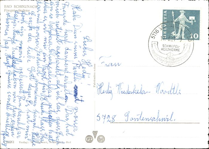 10722749 alte Postkarte Bad Schinznach Fliegeraufnahme postalisch gelaufen KatCode: 11470010020202