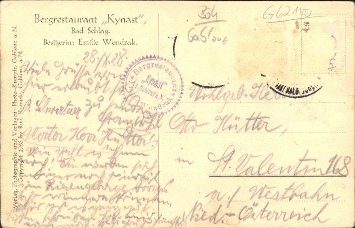 40820050 Bad Schlag Restaurant Kynast postalisch gelaufen Alte Ansichtskarte Postkarte old postcard Katcode 11520
