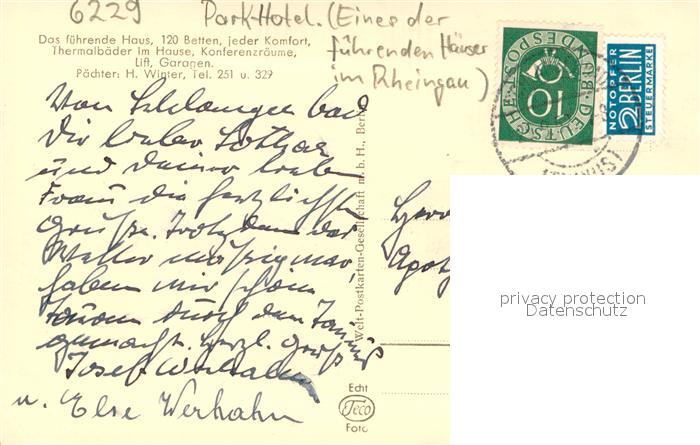 73696478 alte Postkarte Bad Schlangenbad Taunus Hotel Staatliches Kurhaus Gartenfront postalisch gelaufen Erhaltung siehe scans [FriedD77] KatCode: 11110006439014
