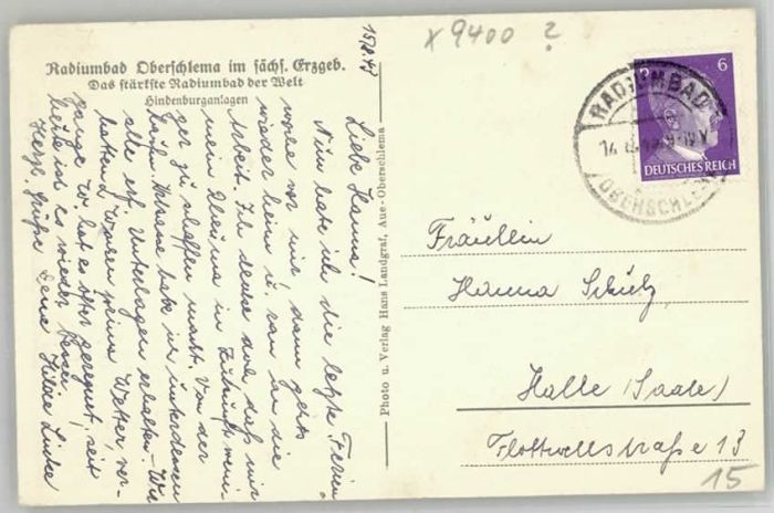 70125612 alte Postkarte Bad Schlema Oberschlema postalisch gelaufen KatCode: 11110014191270