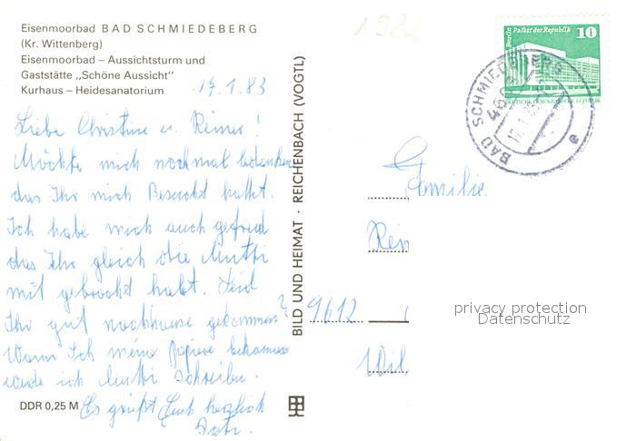 72972396 alte Postkarte Bad Schmiedeberg Aussichtsturm Gaststaette Schoene Aussicht Kurhaus postalisch gelaufen Erhaltung siehe scans [NatalD47] KatCode: 11110015091020