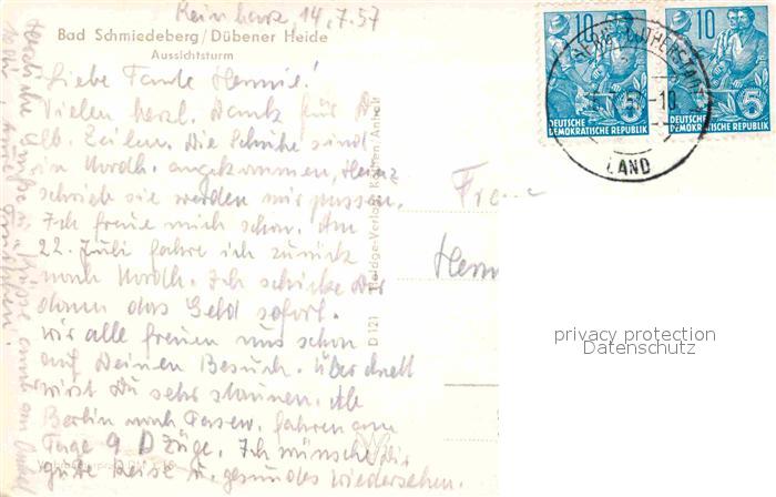 72788118 alte Postkarte Bad Schmiedeberg Aussichtsturm postalisch gelaufen Erhaltung siehe scans [AndreD76] KatCode: 11110015091020