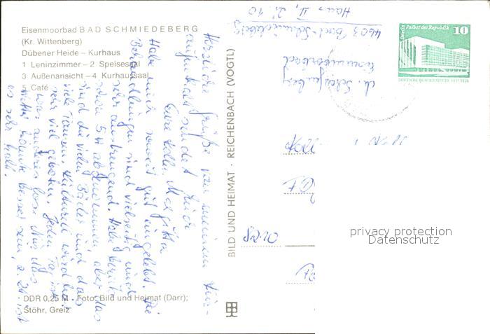 72366691 alte Postkarte Bad Schmiedeberg Duebener Heide Kurhaus Leninzimmer Speisesaal Kurhaussaal postalisch gelaufen Erhaltung siehe scans KatCode: 11110015091020