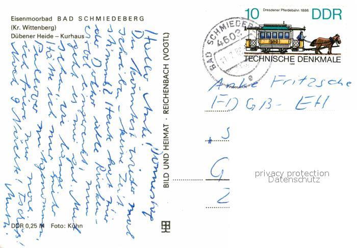 72728502 alte Postkarte Bad Schmiedeberg Kurhaus Eisenmoorbad Duebener Heide postalisch gelaufen Erhaltung siehe scans [FriedD77] KatCode: 11110015091020