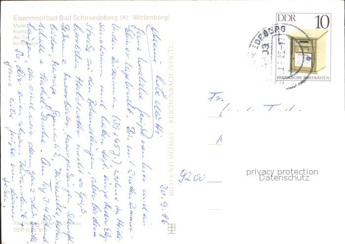 72305857 alte Postkarte Bad Schmiedeberg Markt Kurhaus Au Tor Kurpark postalisch gelaufen Erhaltung siehe scans KatCode: 11110015091020